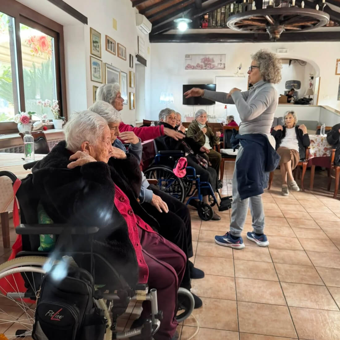 E siamo arrivati a Dicembre… sempre con la nostra tenacia e determinazione . Il nostro movimento ci permette di eseguire tanti piccoli esercizi senza però affaticarci e il tutto si svolge in un atmosfera gioiosa per tutti 8 partecipanti. Bravissimi !!